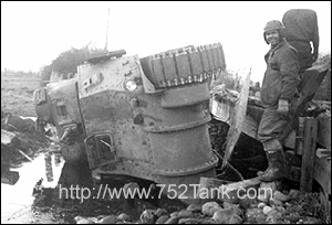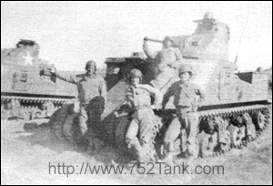 The few photos that do exist of 752nd M3 medium tanks clearly indicate that only the initial M3 version was used at any time in the unit's history. The 752nd never used the cast-hull M3A1, the later welded-hull M3A2 (only 12 of these were built), or the diesel-powered M3A3. Some, but not all, of the 752nd's M3 tanks used in Stateside training had a white (or perhaps yellow) "training" stripe around the circumference of the turret. Similarly, some, but not all M3s in the 752nd also carried an Allied star (without circle) on the side of the turret. The last photograph shown below suggests that the 752nd still used turret stars in Tunisia, but of course the training stripe was removed. No information has yet been found regarding bumper codes or other markings on 752nd M3s. M3