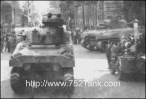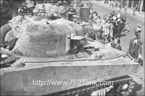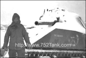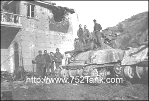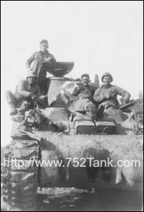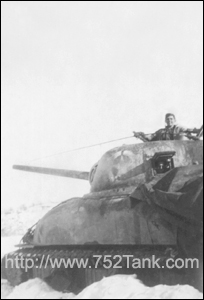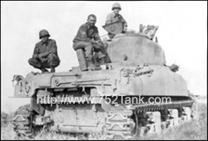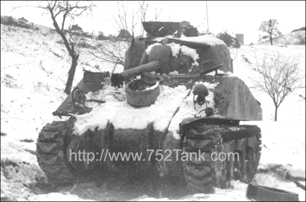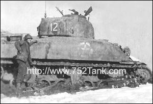 - Researched and Written by Robert Holt - The 752nd Tank Battalion operated a mixed force of M4 and M4A1 tanks in combat until late February 1945, when it received a full compliment of 76mm M4A3 tanks. Both the M4s and M4A1s represented a mix of equipment variations, including the random use of cheek armor and applique armor, as well as variations in transmission covers, track blocks, bogie wheels, track return rollers, sprocket plates, storage expedients, etc. All of the M4s and M4A1s in service with the 752nd throughout the entire war were equipped with small drivers' hatches, the old M34 gun mantlet, the low bustle turret, and no loader's hatch. Spring,