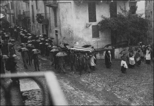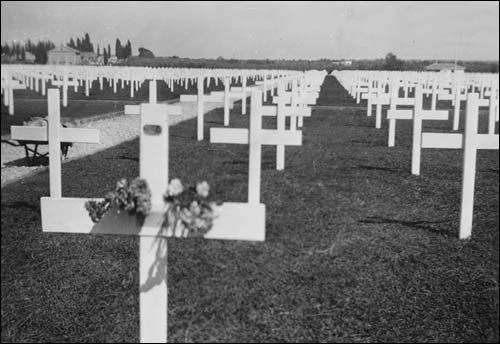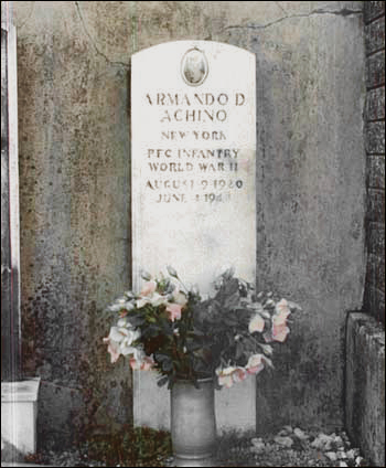 Francesco and Giuseppina Achino were born and raised in Masserano, Italy, in the Achino area from which their surname originated. Shortly after they were married in the beginning of 1920, Francesco decided to leave Italy to go to the USA. Giuseppina was with child, so she decided to stay in Masserano. She gave birth to Armando Dante Achino on 9 August 1920. Mother and son lived together in their little village for about eight months, far away from the father. The only tangible proof of their brief life together in Italy is an extraordinary picture showing five generations: great-great grandmother, great grandmother, grandfather, mother and son. ![]() The marketplace in Masserano around 1920, the year Armando Achino was born there. In the spring of 1921, Giuseppina decided to join her husband in New York City. Her father took her and her little child to the railway station in Gattinara. Giuseppina felt very much alone as she faced this long and exhausting journey, responsible for the baby and their luggage. They traveled first by train, and then by ship. After two weeks they passed the Statue of Liberty, and finally they met Francesco in New York. They went to live in Manhattan, at 328 West 44th Street, among hundreds of other Italian immigrants. Among them, of course, were many people from Biella. ![]() Scenes of immigrant ships in the 1920's. The ships were old and filthy, the decks were crowded, and the living conditions were deplorable. This is what Giuseppina endured as she brought young Armando to New York in search of a better life. Together again, Francesco got a job as a cook, and Giuseppina became a factory worker. After getting jobs, they became American citizens and changed their names to Frank and Josephine. However, Armando and his sisters Olga and Nilda (who were born after Armando) kept their Italian names. Armando grew up just like many other Italian-American children in New York City, although few details are known about his childhood. All that exist are just a few vague recollections of Fulda Samarati, who emigrated from Masserano to the USA in 1930 when she was 7 years old. She recalled a trip that she and Armando took with some friends when they were pre-teens in the mid 1930’s. They crossed the Hudson River on the George Washington Bridge and went to New Jersey, which at the time was mostly grass and woods. She also spoke about a room rented by Armando and some other friends on 42nd Street in New York, where their youth group called The Flames shared each other’s company and listened to music. Thanks to Fulda, we can draw a brief portrait of Armando: he was not a tall or a handsome man, but he was really sweet and kind. Years passed by, and history was taking her course. After suffering the Pearl Harbor attack in December of 1941, the USA entered the Second World War against the Axis Coalition. Armando was called to arms, as were many other American young men. He was sent to the 752nd Tank Battalion, where he trained as a private at Fort Lewis WA, and then in the Mojave Desert in California. On 6 August 1942, Armando and his battalion left New York for Liverpool, England. After several more months of training, they were sent to North Africa, where they landed on January 7, 1943. Because of bureaucratic mistakes, the 752nd Tank Battalion was inactivated for several months, and they did not engage in combat. In January 1944, the battalion was re-organized and sent to Italy. They arrived in Italy on the 12th of January, landing at the port of Bagnoli, near Naples. They were assigned to more training in the Eboli area. Finally, Armando was back in his native country. We know that he hoped to have the opportunity to come back to Masserano at the end of the war, to see grandparents, aunts, uncles and cousins; all the relatives he had never met before. Armando was assigned to the Medical Detachment of the 752nd Tank Battalion. He was a combat medic, part of a five man crew of a halftrack ambulance. His job was to follow the battalion into combat and administer first aid to injured soldiers. It was a difficult and unpleasant task. Most of the time they were under enemy fire, yet they were unarmed. They were all very brave men. ![]() Halftrack ambulances, similar to that of PFC Armando Achino. These ambulances provided mobility over rough terrain, and provided some protection for the casualty and the medics against small arms fire. The 752nd Tank Battalion received its baptism of fire on 27 May 1944, near Roccagorga and Maenza, two small villages in the middle of the Lazio region. This area was being crossed by the Allies, who were heading straight for Rome, which was liberated a few days later. Unfortunately, Armando never made it to Rome. It was 2 AM on 4 June 1944. The 752nd Tank Battalion was moving in a column on Highway 6 toward Rome, near Osteria Finocchio e Centocelle. They were practically at the gates of the town, when a German ME 109 fighter attacked it with bombs. One of the bombs scored a direct hit on the ambulance, instantly killing Armando and his fellow medic Ernest S. Wittwer. Three other medics were seriously injured in the blast. Just a few hours later, the Allies triumphantly entered Rome and were welcomed as liberators. Armando was buried in the American military cemetery in Anzio-Nettuno, along with many other young comrades-in-arms. Frank and Josephine were shattered by the grief of having lost a son. They were even more shattered to think about him, lying so near but so far from his birthplace. At the end of the war, they started to take the necessary steps and negotiations to move Armando’s body from Anzio and bring it to Masserano. In 1948, Josephine went back to Italy to participate in the funeral rites for her child. Unfortunately, because of bureaucratic problems, she had to leave Italy before the rites took place. Armando's Uncle Remo and Aunt Laura waited at the graveyard for their nephew, and welcomed him at the end of his last journey, 