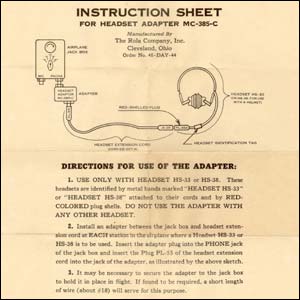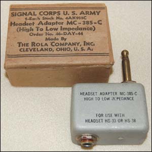In 1943, the Army Air Corps and the Navy began to switch from the 2000 ohm high impedance R-14 receiver to the 600 ohm low impedance ANB-H-1 receiver. This low impedance headset was referred to as the HS-38 headset (the HS-33 was the same as the HS-38, but it included a headband for non-helmeted applications). The most obvious difference between the original high impedance HS-18 and the later low impedance HS-38 was in the -inch PL-354 plug shell, which was purposely colored red to avoid improper integration with high impedance radio equipment. The ANB-H-1 receiver was similar in size and appearance to the R-14 receiver. Eventually the armored corps also adapted the low impedance HS-38 headset, but the majority of headsets for most of the war appear to have used the original high impedance HS-18 headset. Through the use of a special Headset Adapter MC-385-C, it was possible to step down the tank radio's high impedance to the low impedance required for the newer low impedance receivers. Thus, as new headsets flowed through the supply chain, it was possible to use them without converting expensive radio hardware. The adapter was installed between the tank's phone jack on the BC-606 intercom control box) and a CD-307-A extension cord (with a PL-55 plug on one end and a JK-26 jack on the other). The CD-307-A extension cord was then connected to the PL-354 plug of the HS-38 headset.