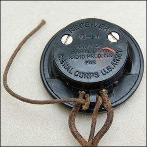 Receivers Used in the M-1938 Tankers Helmet The HS-18 that was originally used with tank helmets was a very simple brown waxed cotton-covered braided cable. Both ends were connected to a high impedence (2000 ohm) R-14 receiver. The length of the cable from receiver to receiver for tank applications was approximately 13 inches, which made for a relatively taut wrap around the M-1938 helmet. (other HS-18 headsets used a slightly shorter 12-inch length). One end of the harness contained a "Y" with one side of the "Y" connected to an R-14 receiver, and the other end connected to a black-shelled PL-54 -inch plug. The "Y" end could be mounted on either the left side or right side of the M-1938 tank helmet to suit the individual crew member's preference. This PL-54 plug on the HS-18 headset was then connected to a JK-26 jack on one end of a 6-foot long CD-307 cable. The other end of this CD-307 cable connected to the tank's BC-606 intercom control box via a -inch PL-55 plug. The HS-18 headset cable had a built-in strain relief cord, as shown in the photo below. This cord was tied to the strain relief lug on each R-14 receiver with virtually no slack. Because the headset wires had more slack than the tied relief cord, if the cable was pulled, any pressure would be absorbed by the strain relief cord. This prevented the headset wires from being disconnected during operations.