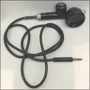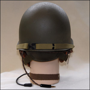 ground forces, and when used with an M-1938 tank helmet, the short 12-inch length required routing under the ear flap as shown below. In
