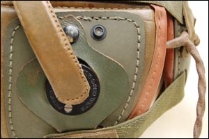 While not a very common practice, every now and then a photo appears showing a tanker with masking tape, duct tape, or electrical tape on top of his tanker's helmet. Contrary to previously published theory, the tape was generally not intended to hold communication wires in place. Instead, there were two more common reasons for taping the ventilation holes of a tanker's helmet. First, tankers' heads were almost continuously exposed to the elements, and the 10 ventilation holes on the top shell of the tanker helmet allowed considerable amounts of rain water to enter the helmet. After dripping down the tanker's head, the water would then run down his neck and dampen his clothing, often for days on end depending upon weather and operational conditions. A little tape over the holes was a quick remedy, at least for the rain that entered through the holes. Also, WWII tank engines drew a strong and constant flow of cool outside air through any open hatches. Since the top of the tanker's helmet was directly in the path of this air flow, the cool air rushed right through the holes in the helmet and exited along the tanker's neck and ears. Again, a little tape at least stopped the flow of air through the tanker's helmet, and also minimized body heat loss in cold weather. Tape-Covered Ventilation Holes