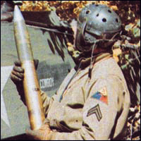 The earliest of these was known as M-1938 Resistal goggles, which consisted of a pair of clear laminated polarizing lenses, individually framed in metal, and hinged in the center. The lenses were mounted on a leather cushion, which was held snugly against the wearer's face by an elasticized strap. The Resistal goggles tended to restrict vision because of the split frame, and the lenses tended to delaminate. They were phased out of production, and according to a February 1944 T/O&E they were only being issued as a means of depleting existing inventories. Photos of the 752nd tankers show M-1938 goggles still in use in mid-1944. By early to mid 1944, the majority of tankers were wearing the Polaroid All Purpose Goggle Kit No. 1021. Photos of 752nd tankers specifically show the 1021 model as the standard tanker goggle through the end of the war, even though November 1944 T/O&Es were calling for a different standard (see below). The Polaroid 1021 goggle was developed mainly for use by the Army Air Corps, but it found widespread use in all Army branches. The 1021 all-purpose goggle kit featured a comfortable light-weight foam and rubber frame, held in place by a thin elasticized strap. In addition to improved comfort over the earlier M-1938 goggles, the Polaroid 1021 kit featured a single one-piece lens for better visibility, and four different removable lenses were available for better visibility under a variety of conditions. A non-polarizing clear lens was available for protection against dirt and grime under normal conditions where no glare was present. A light green lens was available for glare protection on normal days, and a dark green polarizing lens was available for glare protection on "exceedingly brilliant" days. Finally, a red non-polarizing "dark adaptor" lens was available for adapting the eyes to night vision. T/O&Es in November 1944 were calling for the standard use of the M-1944 goggle, and these goggles came into use by ground forces in late 1944/early 1945. However, photos of 752nd tankers do not show this goggle in use until the post-war period. The M-1944 goggle featured a one-piece molded rubber frame, which housed a one-piece lens whose viewing area was considerably larger than that of the Polaroid 1021 model. The frame was held in place by a thick elasticized strap. Like the Polaroid 1021, the M-1944 goggle lenses were also available in a variety of shades for various operating conditions. M-1944 lenses were available in non-polarizing clear, polarizing green, polarizing gray, and non-polarizing red "Dark Adaption" varieties. M-1944 goggles continued as the standard-issue ground forces goggle into the 1970's, and even today's ground forces goggles are only a slight variation of the M-1944. Back to Top of Page