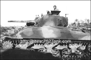 - Researched and Written by Robert Holt - There was very little standardization of vehicles or markings in the 752nd Tank Battalion during the combat period. A number of factors contributed to this. The 752nd, like the other independent tank battalions in the MTO, generally received used vehicles. The newer, fresher equipment tended to be allocated on a priority basis to the 1st Armored Division. When the 752nd did receive replacement vehicles, they tended to receive just a few at a time to replace combat losses. The tankers often hand-selected their replacement tanks at the motor pool. Their selection criteria varied, with some tankers preferring the rounded-hull M4A1 for perceived ballistic protection, and others choosing their new mounts on the basis of the main gun's condition (no "play"), engine life, "clean" interior (no horrific combat injuries among the prior crew), or some other factor. All of this contributed to a rather eclectic assortment of M4's and M4A1's that widely varied in terms of transmission covers, bogie wheels, track blocks, hatch configurations, cheek armor, applique armor, hull details, etc. Since the vehicles were often sourced from other units and the vehicles were pretty well worn, the markings were often painted over prior to delivery to 752nd. So during the combat period when tank losses needed to be very quickly replaced, there was simply not enough time to paint the vehicles with the proper markings before they entered combat. And when they finally were marked, they were apparently done so by first or sometimes second echelon maintenance crews, which resulted in some rather crude and non-standardized markings. This, of course, is what makes these vehicles such an interesting study today. While the 752nd was a very effective and well-regarded combat unit, it wore its "bastard battalion" status like a badge. In addition to combat situations not allowing much time to worry about marking the tanks according to regulations, the officers and men of the 752nd seem to have adapted a healthy disregard for such matters. Marking vehicles according to regulations was apparently very low on the operational priority list. Oddly enough, the period in which the greatest standardization of vehicles and markings was in the Spring of 1944. At this time, the battalion had been recently re-equipped with M4's and M4A1's when they arrived in Italy from North Africa. From January to May 1944, they engaged in training and maintenance, and since no tanks had been lost in combat yet, there was no influx of replacement vehicles. As a result, the tanks had a fairly consistent look in terms of the variants used, and also the simple marking system that was employed. The mix of vehicles and markings changed during the late Autumn of 1944 and continued until late February 1945, when the battalion drew a full compliment of (used) M4A3 76mm tanks. Those tanks were fairly uniform in equipment details, but there was some variation in whatever few markings were applied to the tanks. Click the links below for a pictorial description of the tanks that were used by the 752nd Tank Battalion. Since many of these photos are from private collections, I unfortunately am forced to stamp the photos in order to protect them from falling into commercial use. Unfortunately, I have been burned in the past.... But hopefully viewers can still get a good sense of the vehicles and markings of the 752nd Tank Battalion in order to aid their modeling, technical, or historical interests. Click
